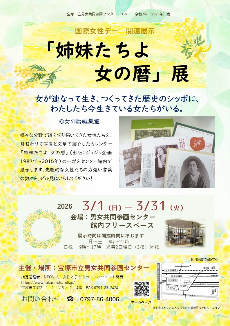 【3/1~イベント】国際女性デー関連展示『姉妹たちよ 女の暦』展