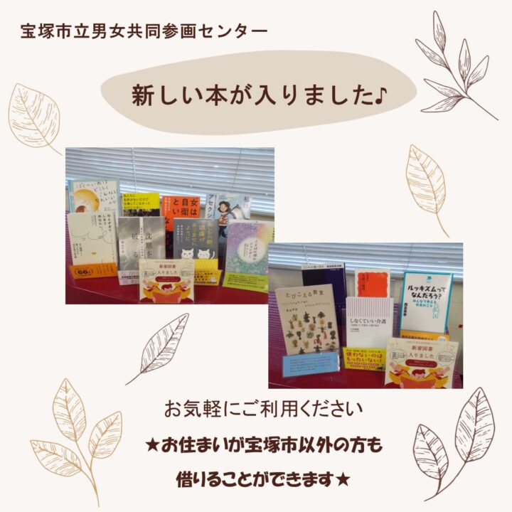 新しい図書が届きました。 お1人様5冊、2週間借りていただけます。 情報・図書コーナーの図書リストもご覧ください→ 宝塚市以外の方もご利用できます お気軽にご利用ください 🔰なお、新規ご利用の方は 受付にて図書カード[…..]