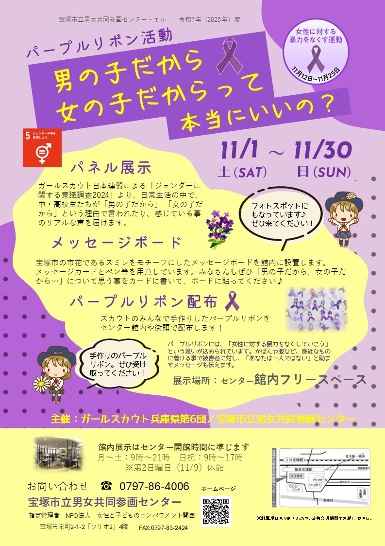 | 主催 | ガールスカウト兵庫県第6団/ 宝塚市立男女共同参画センター・エル |