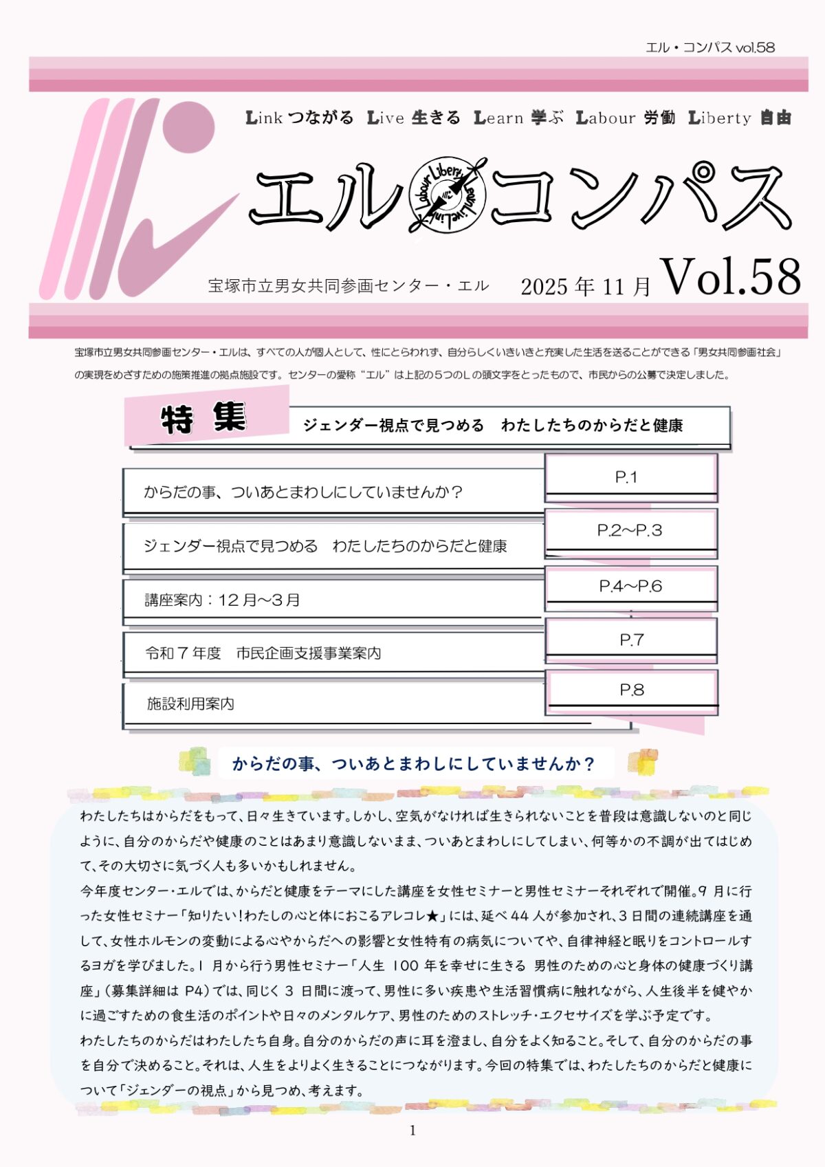 宝塚市立男女共同参画センター・エルでは、情報誌「エル・コンパス」を年3回発行しています。